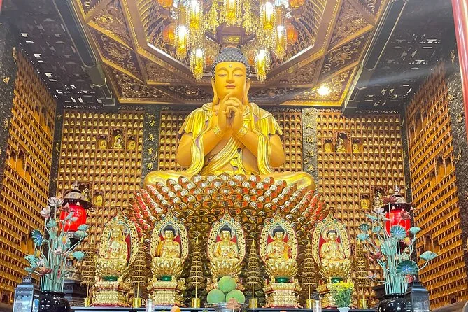 Você visita mercados (incluindo um grande mercado de flores), prédios antigos de 1968, altares e bairros locais em Cholon.