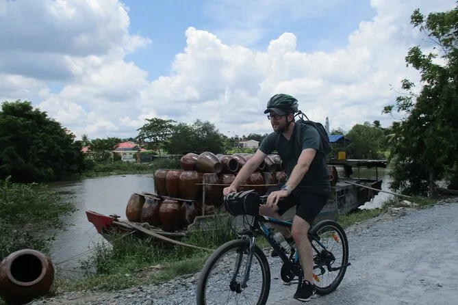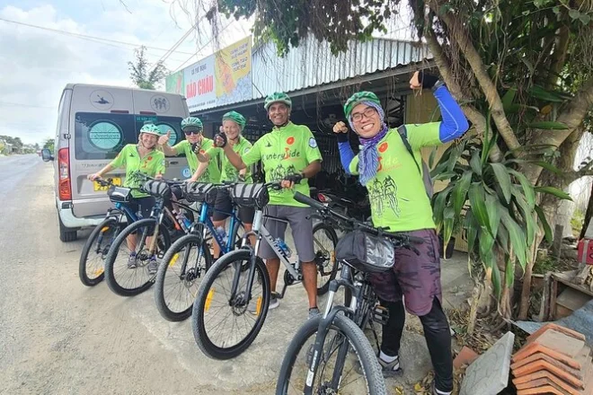 Sua viagem inclui um guia local experiente em ciclismo, duas noites de hospedagem (casa local em Can Tho e hotel em Chau Doc), todas as taxas de balsas e barcos — incluindo o memorável passeio de barco rápido até Phnom Penh — além do aluguel da bicicleta de montanha com capacete e jantar na hospedagem. Transfers em veículo com ar-condicionado também fazem parte do pacote.