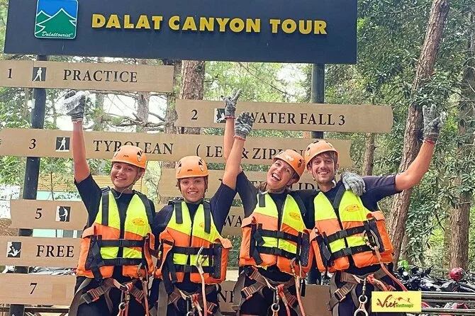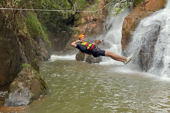 Seu dia inclui transporte de ida e volta do hotel em Da Lat, todas as entradas na cachoeira Datanla, guias profissionais que garantem a segurança em todas as atividades, uso completo de roupas de neoprene e equipamentos de escalada de alta qualidade (Petzl/Beal/Black Diamond), lanches e água purificada durante o percurso, além de um picnic vietnamita com pão fresco e frutas da estação, desfrutado ao lado das quedas d’água antes de voltar juntos para a cidade.