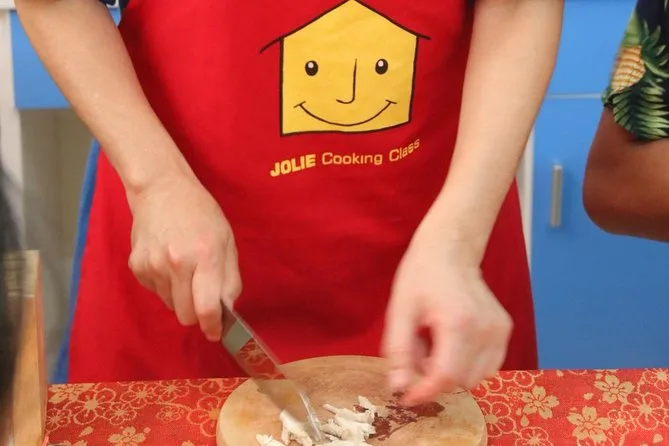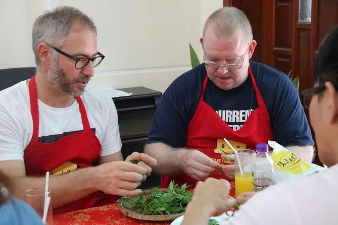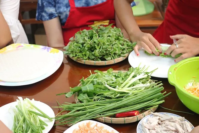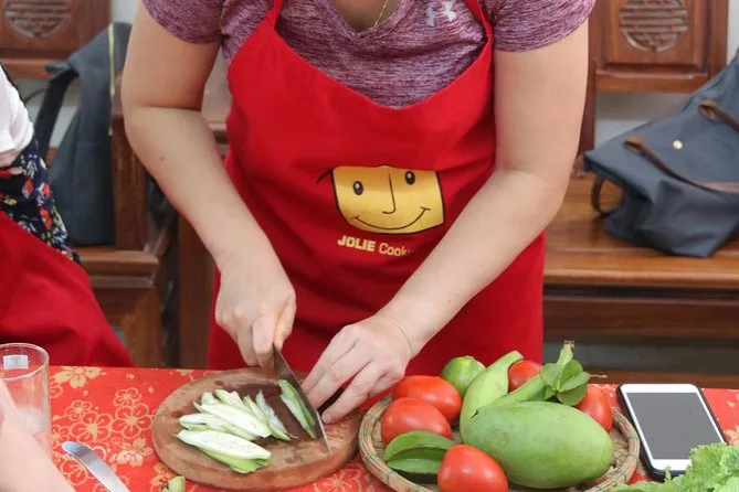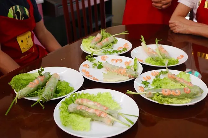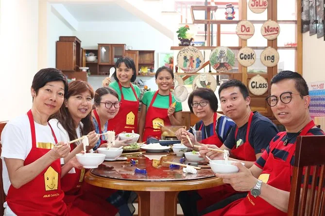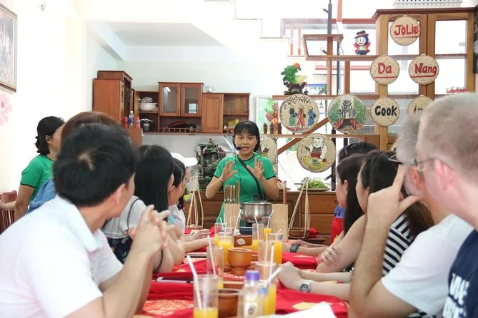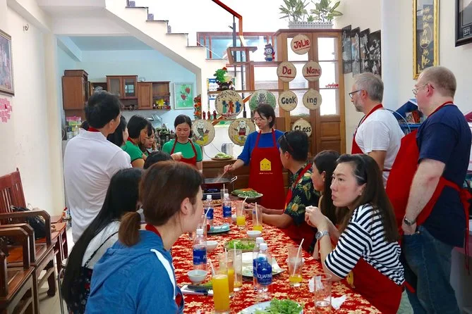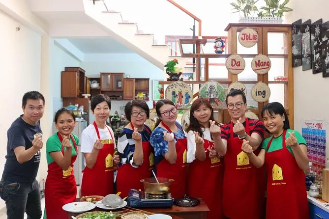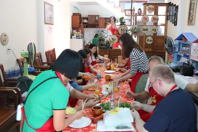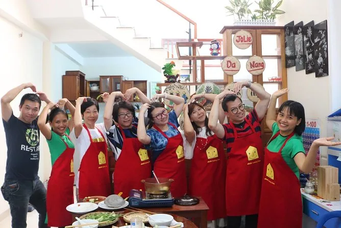 Seu dia inclui café num café local para começar bem, todos os ingredientes fresquinhos do mercado agitado de Da Nang para a aula prática na cozinha da Jolie, água mineral durante toda a experiência, acompanhamento de um guia local que fala inglês ou francês, e um almoço completo com tudo que vocês prepararem, antes de voltar no seu ritmo.