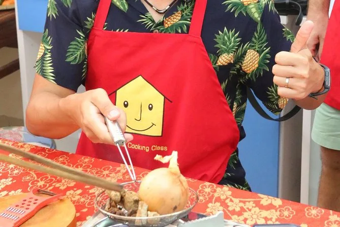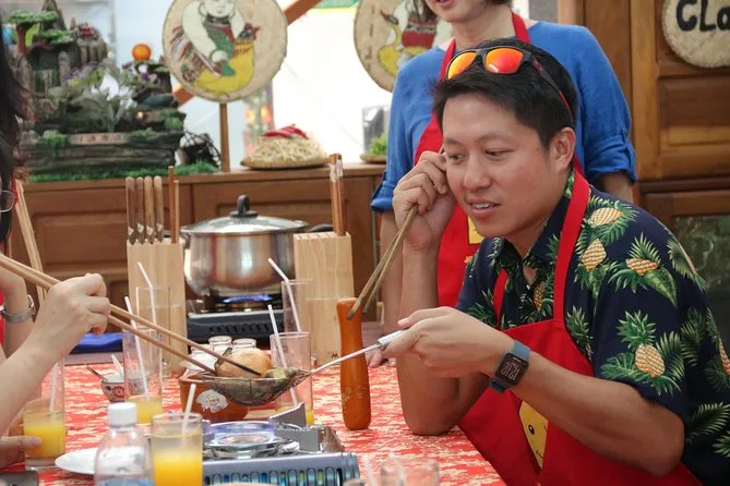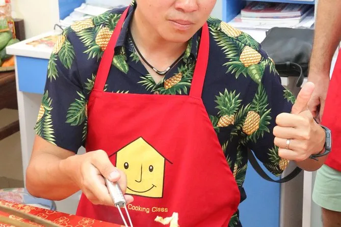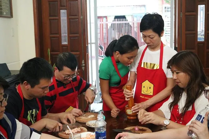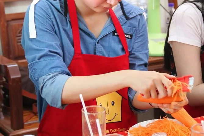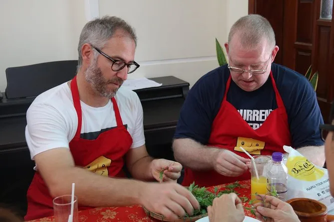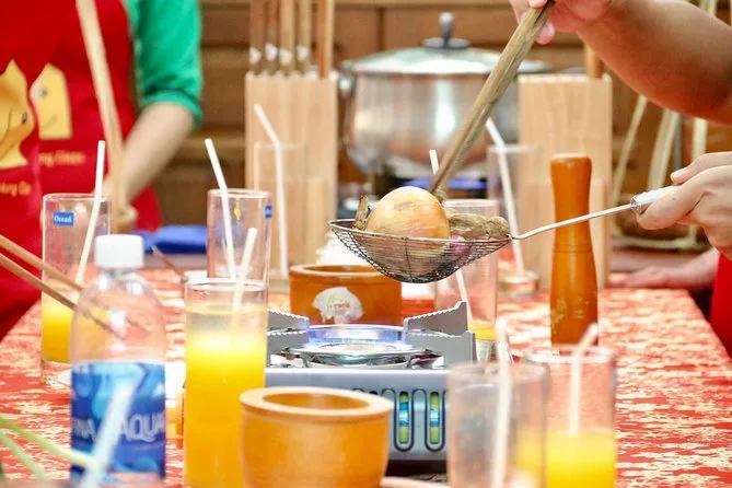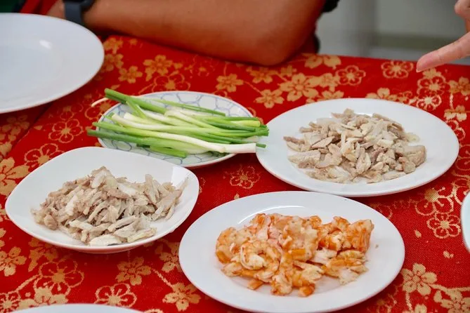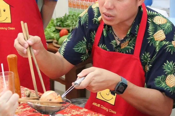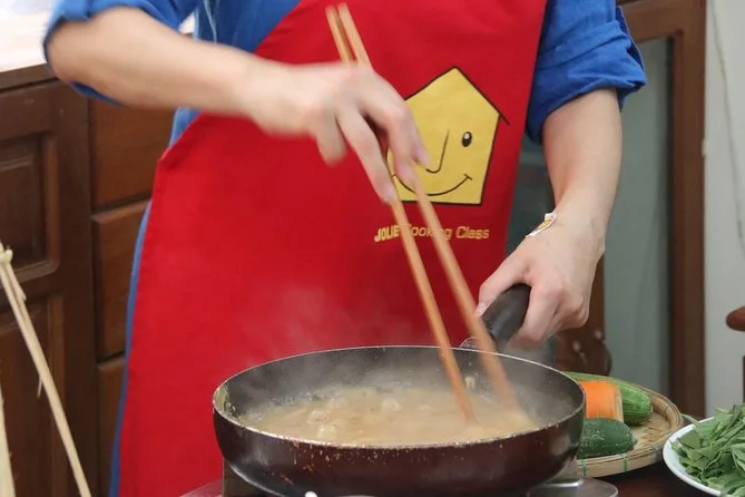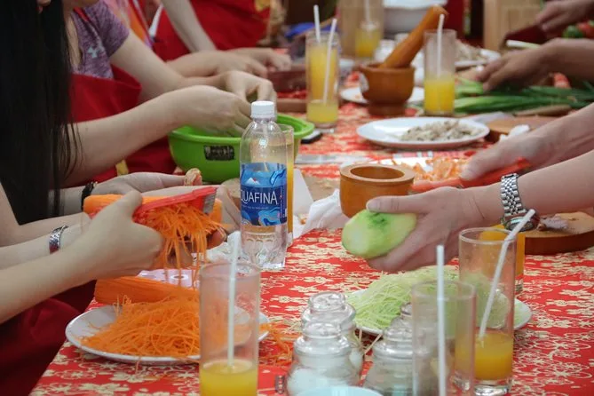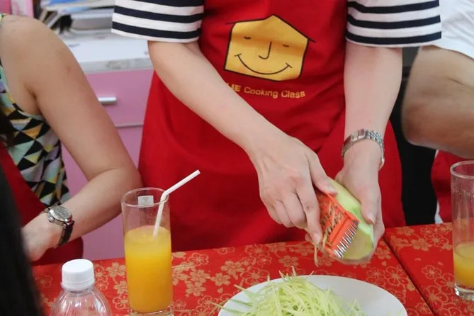 Seu dia inclui café num café local para começar bem, todos os ingredientes fresquinhos do mercado agitado de Da Nang para a aula prática na cozinha da Jolie, água mineral durante toda a experiência, acompanhamento de um guia local que fala inglês ou francês, e um almoço completo com tudo que vocês prepararem, antes de voltar no seu ritmo.