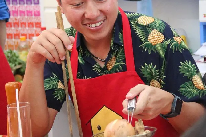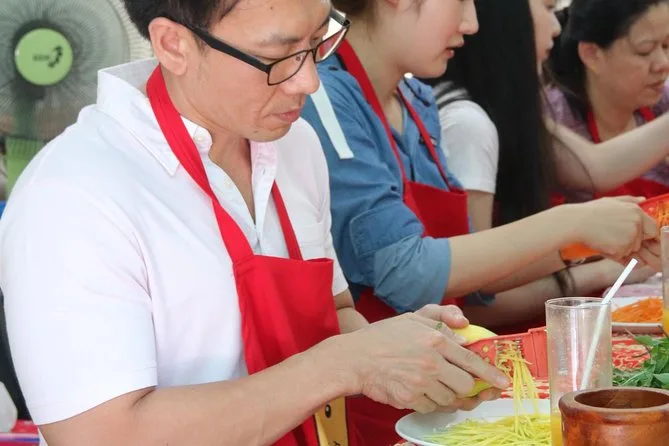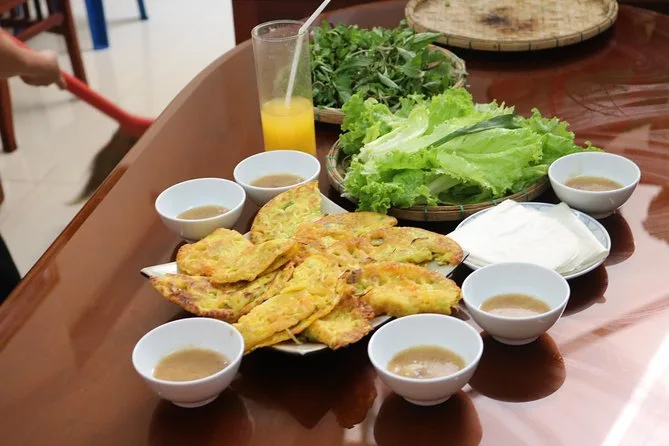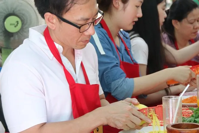Comece seu dia em Da Nang tomando café com os locais, depois mergulhe no mercado agitado para escolher ingredientes fresquinhos para a aula de culinária na casa da Jolie. Prepare-se para risadas com as trapalhadas na cozinha, histórias compartilhadas à mesa e um gostinho verdadeiro da cultura vietnamita — além de um almoço que você vai lembrar por muito tempo.