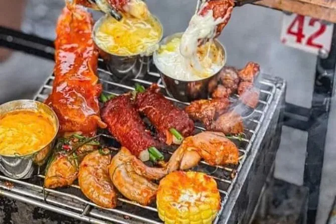 Sim — há um menu com 6 pratos de comida de rua ou um com 7 pratos que inclui frutos do mar/carnes grelhadas e cerveja local.