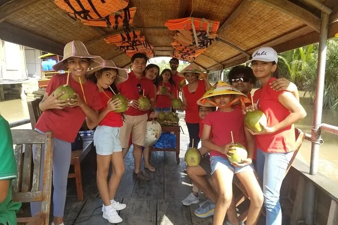 Você fará passeio de barco pelo rio, visitará oficina de coco e casa de tecelagem de esteiras, caminhará por uma vila, provará frutas frescas, fará passeio de xe loi ou bicicleta pelos coqueirais, almoçará à beira do rio e fará um passeio de sampan pelos canais.