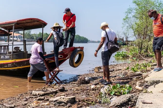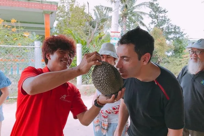 Seu dia inclui traslado dos hotéis dos distritos centrais de Ho Chi Minh, transporte de barco e xe loi ou bicicleta conforme o roteiro, guia em inglês que conta histórias locais, frutas frescas para degustar nas paradas, água mineral para cada participante e almoço em restaurante à beira do rio antes do retorno à tarde.