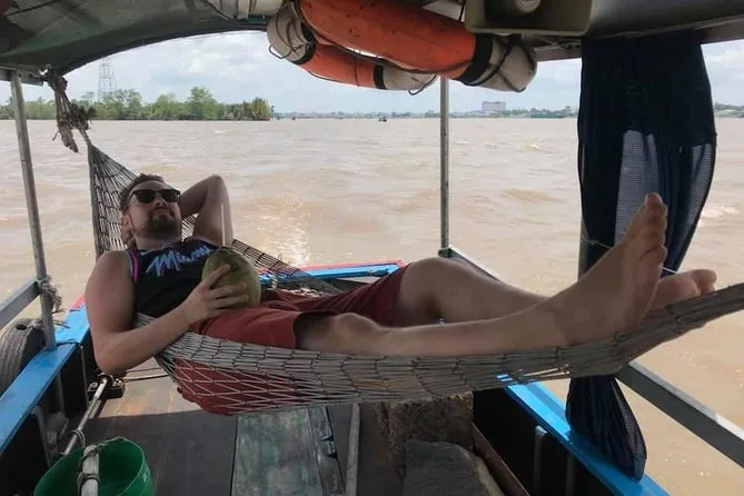 Seu dia inclui traslado gratuito do hotel no centro de Ho Chi Minh (Distritos 1 e 3), todos os passeios de barco pelos canais de Cai Be com guia local que fala inglês, aula prática de culinária vietnamita onde você ajuda a preparar seu próprio almoço, caiaque ou remo de sampan, degustação de frutas frescas e chá de mel, além de uma cerveja ou refrigerante antes do retorno ao pôr do sol.