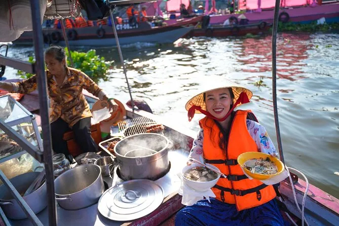 Você vai navegar pelos mercados flutuantes ao amanhecer no Delta do Mekong, provar cocada ainda quentinha, pedalar por vilarejos sob palmeiras e compartilhar refeições com famílias locais. Essa viagem de dois dias te conecta à vida real do rio — não só com imagens, mas com sons e sabores — deixando lembranças que ficam muito depois do retorno a Ho Chi Minh.