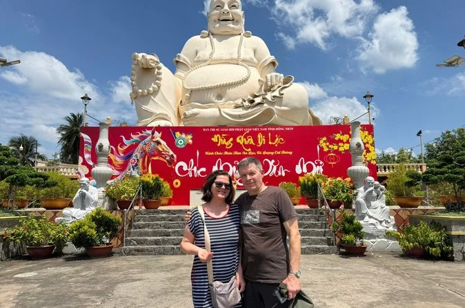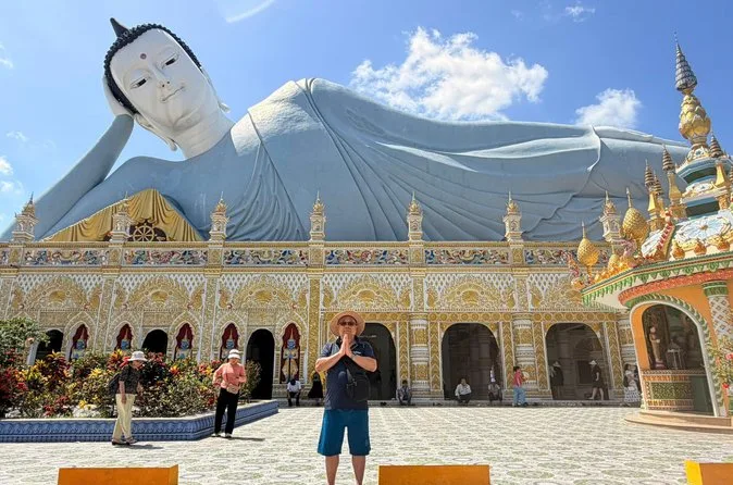 Já estávamos em movimento antes do sol nascer, a van saindo do caos de Saigon e entrando no silêncio verde e plano do Delta do Mekong. Encostei a testa na janela — plantações de arroz que pareciam infinitas, búfalos d’água piscando na meia-luz. Nosso guia, Minh, tinha um jeito de mostrar as coisas sem parecer uma aula. “Ali é a Pagoda Vinh Tràng,” disse ele quando chegamos — cheia de Budas dourados e ângulos curiosos, com incenso enrolando no ar quente. Tentei tirar uma foto, mas não conseguiu capturar a paz que senti lá dentro.