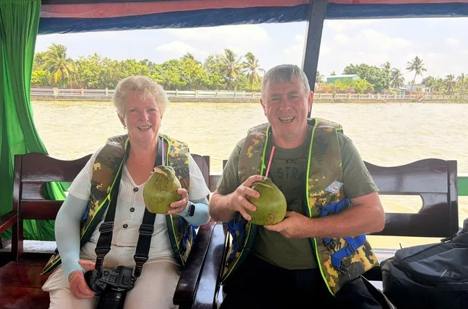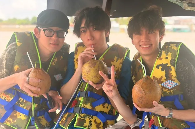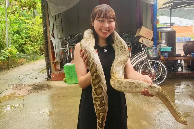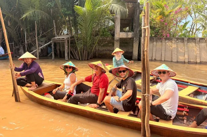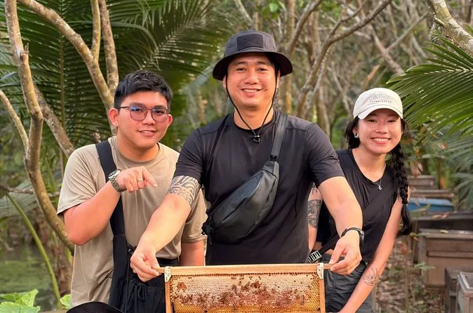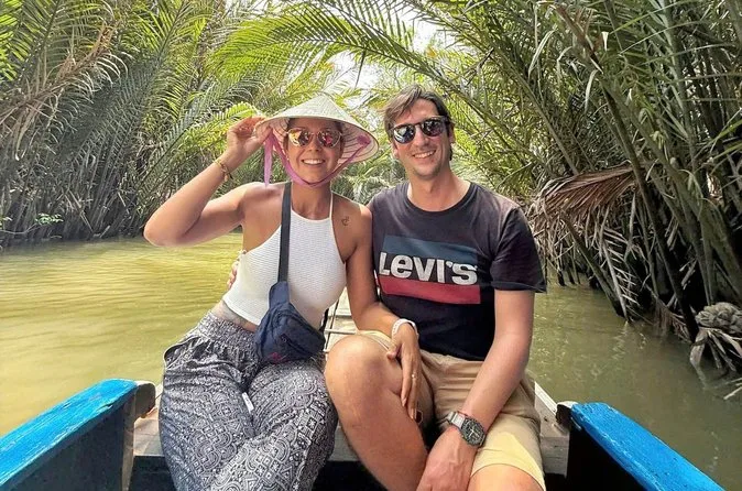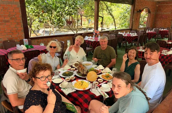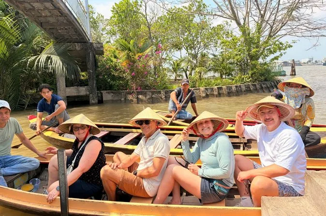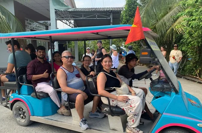O dia inclui traslado do hotel em Ho Chi Minh, entradas no Pagode Vinh Trang e outros pontos, todos os passeios de barco (incluindo remada pelos canais sombreados), aluguel de bicicleta para os caminhos das vilas, água mineral durante o passeio, degustação de frutas tropicais e chá de mel na Ilha do Unicórnio, além de um almoço tradicional vietnamita com opções veganas, retornando em veículo com ar-condicionado à tarde.