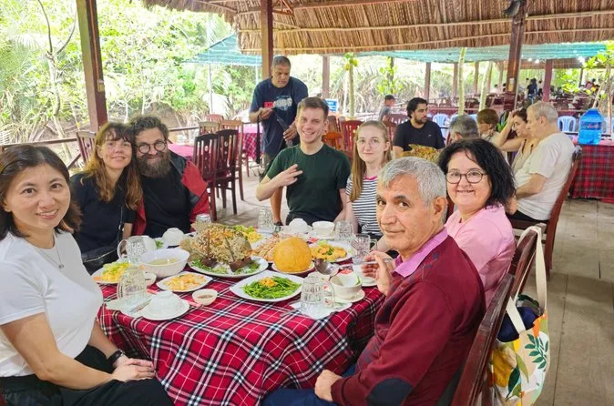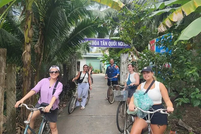 Você vai explorar jardins antigos da pagoda perto de My Tho, navegar por casas de palafitas em dois tipos de barcos, provar frutas exóticas ao som de música folclórica, experimentar doce de coco na Ilha do Coco, almoçar à beira do rio e pedalar por caminhos da vila. Prepare-se para surpresas — e até risadas com seu primeiro gole de chá com mel.