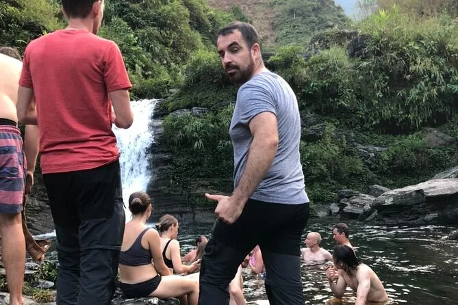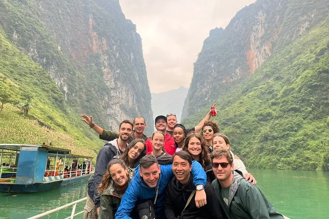 No terceiro dia, descemos até o rio Nho Que — aquela cor verde simplesmente não existe em outro lugar, é impossível. O passeio de barco pelo cânion Tu San foi silencioso, só o som da água batendo na madeira; todo mundo ficou hipnotizado pelas paredes que pareciam não ter fim. Depois, passamos pelas plantações de arroz perto de Sa Li e paramos em um antigo bunker francês (Minh contou histórias do avô lutando ali). A última noite na vila Du Gia foi pura alegria, comendo arroz pegajoso sentado no chão sobre esteiras de bambu. Choveu forte depois da meia-noite — o barulho do telhado de zinco era tão alto que ninguém conseguiu dormir direito.