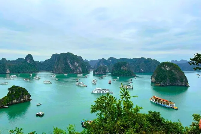 Seu dia inclui transporte em minivan do hotel no Old Quarter de Hanoi, entradas para todas as atrações na Baía de Ha Long, incluindo Amazing Cave e Ilha Titov, um guia local que fala inglês e mantém o passeio animado (além de responder todas as suas perguntas), e almoço servido a bordo enquanto você desliza entre as ilhas de calcário antes de voltar para Hanoi com conforto.