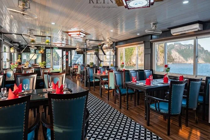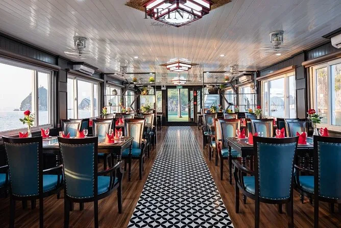 Você vai visitar uma fazenda de pérolas, navegar pela Baía de Ha Long, fazer caiaque ou passeio de sampan na Luon Cave, explorar a Amazing Cave, almoçar a bordo e visitar a Ilha Titov.