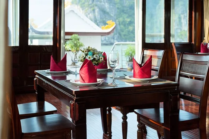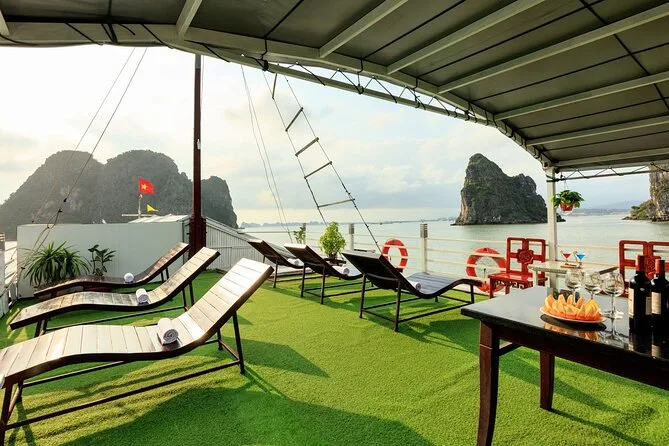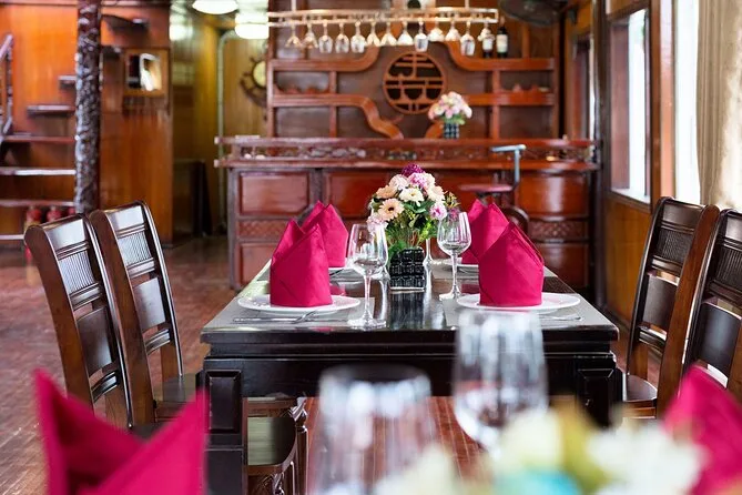 Seu passeio inclui transfers ida e volta pela estrada expressa saindo do Old Quarter de Hanói, guia local falando inglês durante toda a viagem, todas as taxas de entrada para cavernas e ilhas, equipamento de caiaque para explorar os cantos mais tranquilos de Halong Bay, três refeições frescas e café da manhã buffet a bordo, festa do pôr do sol com petiscos e bebidas no deck — e até uma aula de culinária antes do jantar para quem quiser se aventurar.