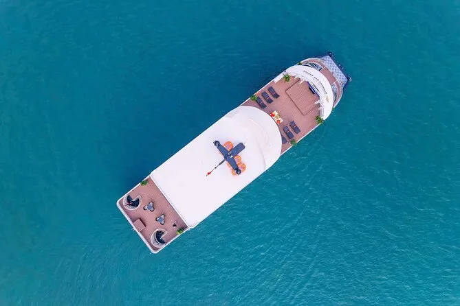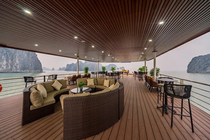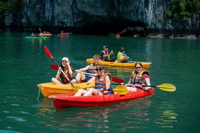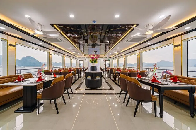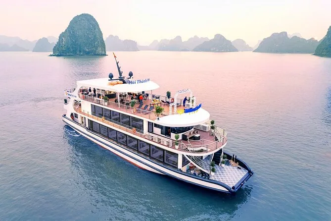 O seu dia inclui transfer ida e volta em limousine saindo do Bairro Antigo de Hanoi ou ponto de encontro na Ópera de Hanoi, se necessário. Todas as entradas estão cobertas — Caverna da Surpresa, Ilha Titop — e você terá acesso a caiaque ou passeio de barco de bambu na Caverna Luon. Um almoço buffet com culinária vietnamita (com opções vegetarianas) é servido a bordo, seguido de uma festa do chá ao pôr do sol antes do retorno a Hanoi à noite.