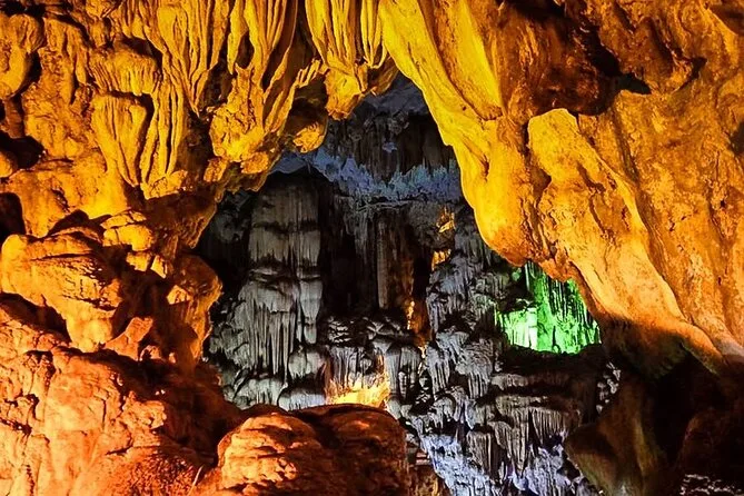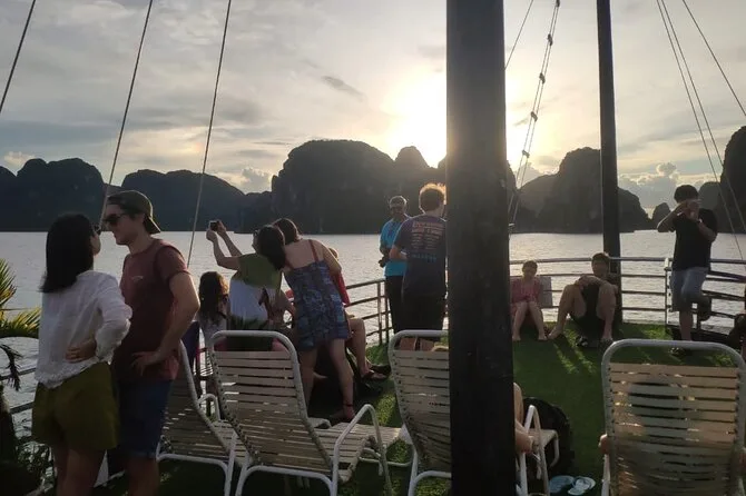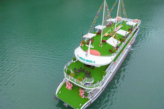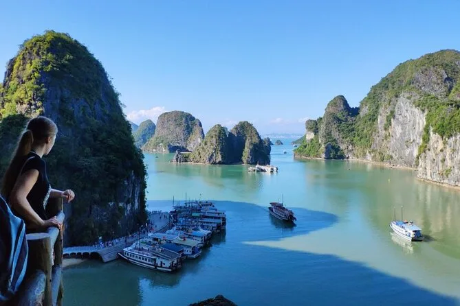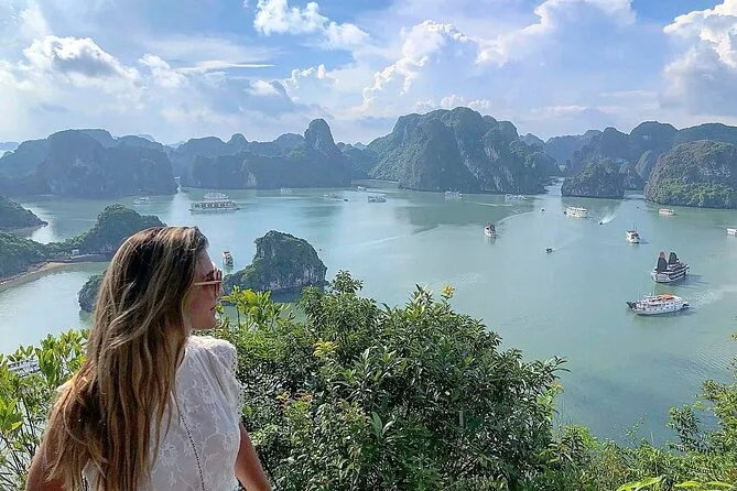Você vai visitar a Gruta Surpresa (Sung Sot), fazer caiaque ou passeio de barco de bambu na Gruta Luon e parar na Ilha Titop para nadar ou fazer trilha.