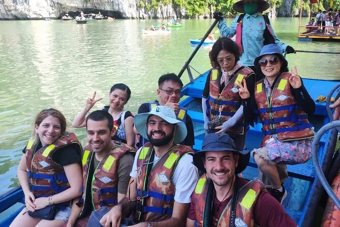 Você pode escolher entre caiaque ou barco de bambu na Gruta Luon; ambos estão incluídos no ingresso.