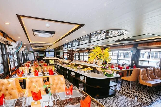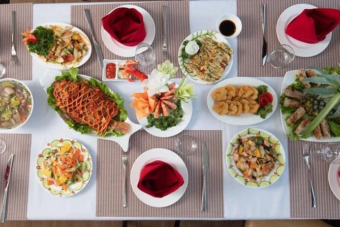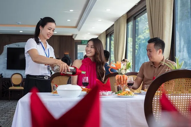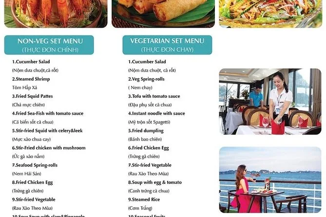 Sim, um almoço tradicional vietnamita de frutos do mar é servido no barco; opções vegetarianas podem ser solicitadas.
