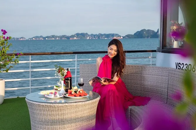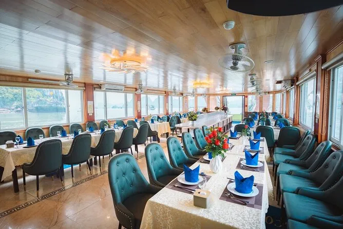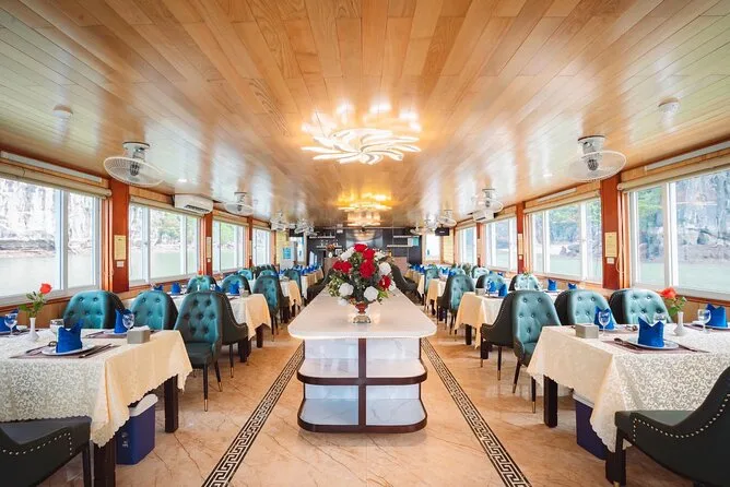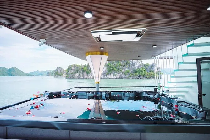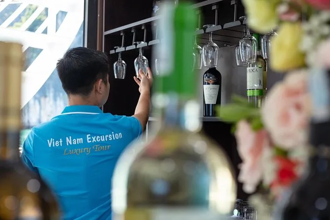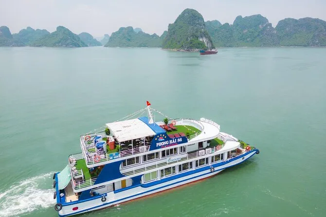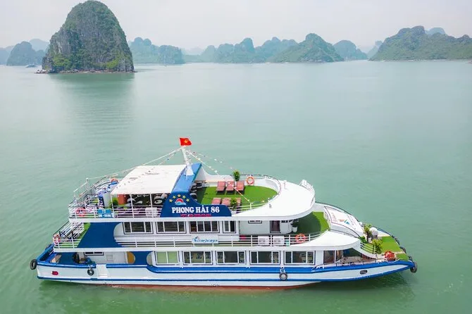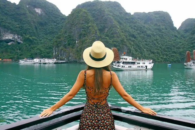 Seu dia inclui traslado do hotel em Hanoi em ônibus com ar-condicionado, entradas para todos os locais visitados na baía de Halong, incluindo Gruta Surpresa e Ilha Titop, água mineral durante toda a viagem, guia em inglês que conta histórias pelo caminho, além de um almoço vietnamita completo servido a bordo antes do retorno ao hotel no fim da tarde.