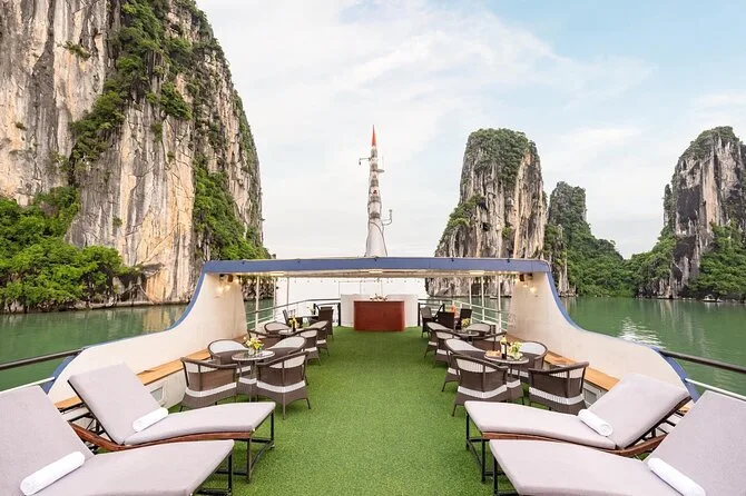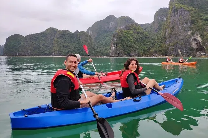 Comece seu passeio de um dia em Halong Bay com traslado do hotel em Hanoi e um trajeto tranquilo por vilarejos locais. Navegue entre ilhas de calcário, aproveite um almoço fresco de frutos do mar a bordo, explore as câmaras fresquinhas da Gruta Surpresa, faça caiaque ou passeio de barco de bambu na lagoa da Gruta Luon e nade ou suba na Ilha Titop antes de voltar com o entardecer iluminando a baía.