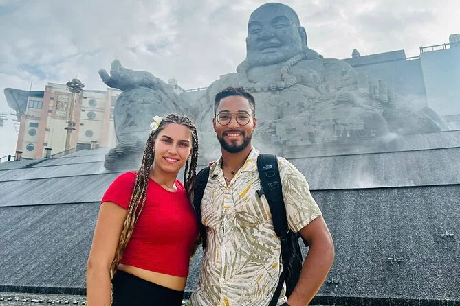Você vai subir de teleférico, visitar templos e pagodes, ver a estátua gigante da Lady Buddha e explorar cavernas.