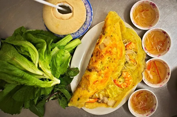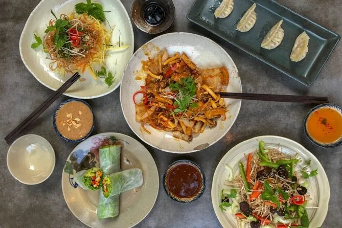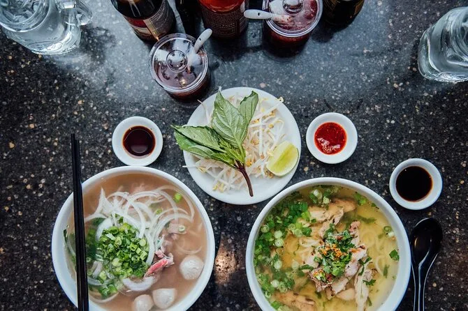 Você vai provar sopa de macarrão com carne, banh mi, panquecas crocantes, rolinhos primavera, arroz doce de banana grelhada e muito mais.