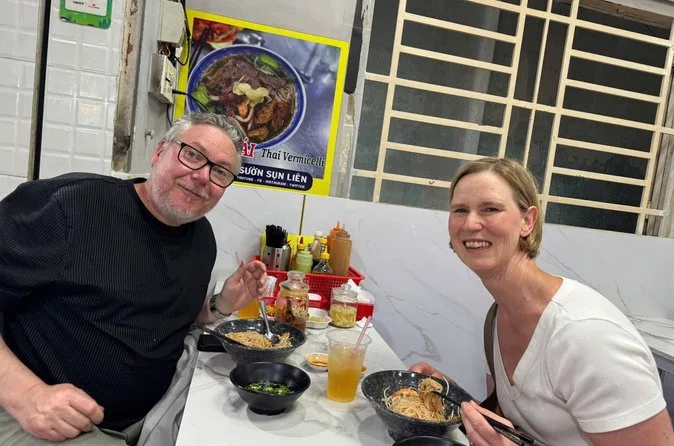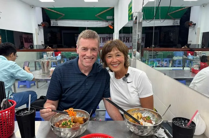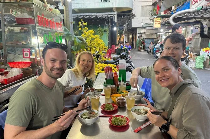 Você vai se aventurar pelo trânsito maluco de Ho Chi Minh de scooter com um guia local, provar comidas de rua em vielas escondidas e nos mercados de Chinatown. Espere risadas em volta de tigelas de macarrão em Cholon, doces pegajosos no Mercado Binh Tay e histórias em cada mordida — com transfer do hotel para você só curtir o passeio.