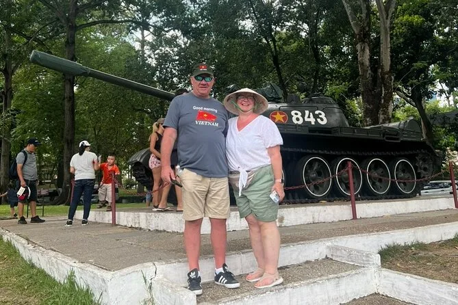 O Museu dos Vestígios da Guerra foi pesado, mas essencial. O pátio está cheio de helicópteros e tanques antigos; dentro, algumas fotos são difíceis de encarar, mas ajudam a entender tudo melhor. Minh não nos apressou — deixou cada um no seu ritmo, e quem quisesse podia sair um pouco para respirar.