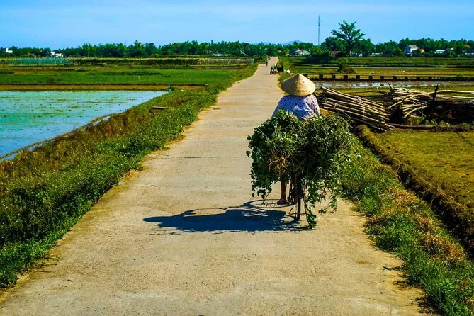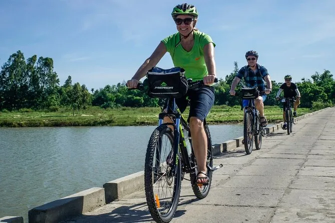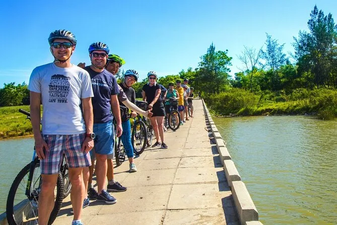 O dia inclui bicicleta de qualidade ajustada para você, guia local especialista que fala inglês, frutas frescas e bebidas durante o trajeto rural, além de um almoço simples vietnamita antes do retorno de van privativa ao seu hotel em Hoi An.