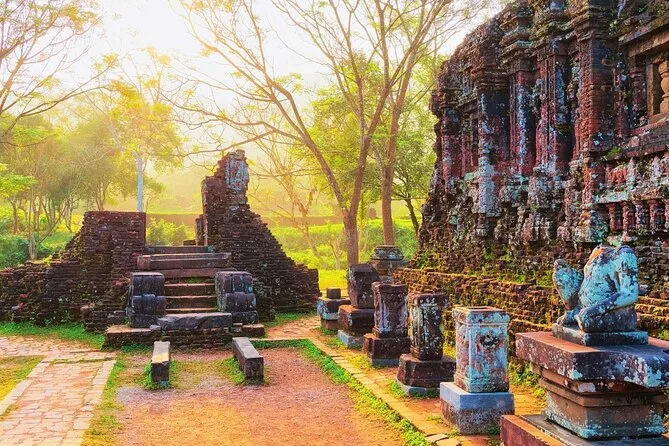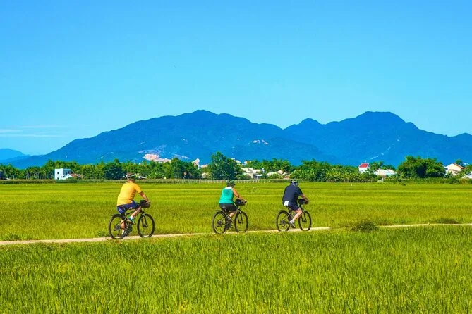 Você vai pedalar por ruas silenciosas de Hoi An antes da maioria dos turistas acordar, passar por vilarejos reais com um guia local, provar frutas frescas e café no meio do caminho, explorar as ruínas musgosas do Santuário de My Son antes do almoço e voltar de van confortável. Prepare-se para momentos verdadeiros — sapatos sujos, risadas com estranhos — e lembranças que ficam mais tempo que qualquer foto.