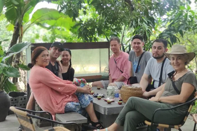 Depois de recuperar o fôlego (e talvez minhas pernas ainda tremendo), pegamos as bicicletas para um passeio tranquilo por caminhos planos que cortavam os arrozais. Passamos por um senhor cuidando do búfalo que acenou pra gente como se conhecesse todo turista que passa por ali. O ar tinha cheiro de terra molhada e grama — difícil explicar, mas era algo que trazia paz. Na hora do almoço, comemos pratos vietnamitas simples num lugar local, nada sofisticado, mas exatamente o que você quer depois de pedalar no calor. Alguém na mesa pediu mais pimenta e Minh riu, porque aqui “um pouquinho” pode ser bem ardido.