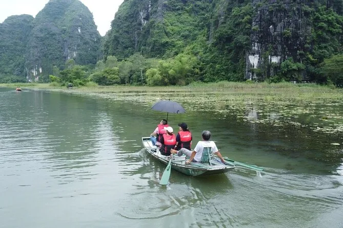 Seu dia inclui transfer do hotel em Hanói, todas as entradas para Mua Cave, passeio de barco em Tam Coc e templos em Hoa Lu, três garrafas de água por pessoa, almoço com pratos locais, guia em inglês que conta histórias durante o trajeto, transporte confortável para seu grupo pequeno de até nove pessoas — além de guarda-chuvas ou capas de chuva se precisar, e o retorno ao hotel no fim da tarde.