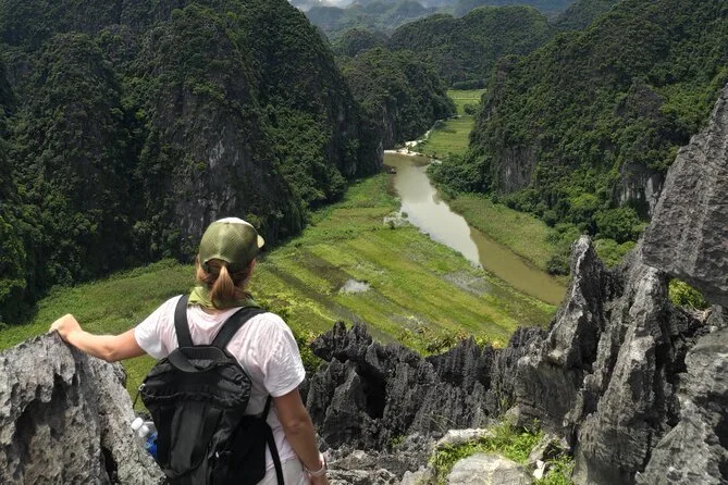 Você começa cedo saindo de Hanói, sobe a Mua Cave para vistas incríveis dos picos de calcário de Ninh Binh, pedala ao lado dos arrozais, compartilha um almoço com seu grupo pequeno, desliza de barco pelas tranquilas cavernas de Tam Coc e explora os pátios dos templos em Hoa Lu — a antiga capital do Vietnã. É um passeio que vai ficar na sua memória muito depois de voltar pra casa.