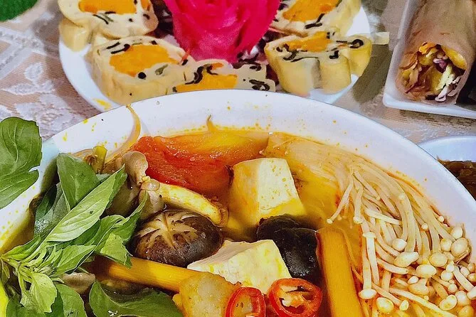 Você vai se perder nos becos escondidos de Saigon, provar bánh mì vegano, curry de cogumelos com coco em cozinhas familiares, frutas tropicais em mercados animados e sopa doce de lótus compartilhada pelos locais. Prepare-se para risadas com rolinhos bagunçados, histórias que não acha na internet e sabores que ficam na memória.