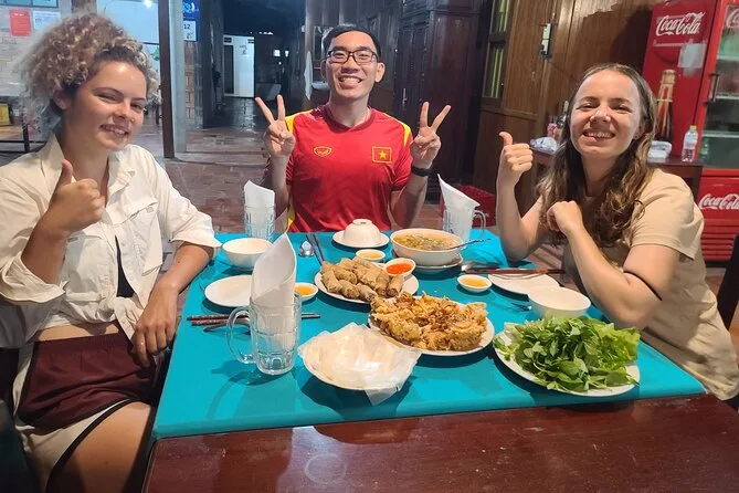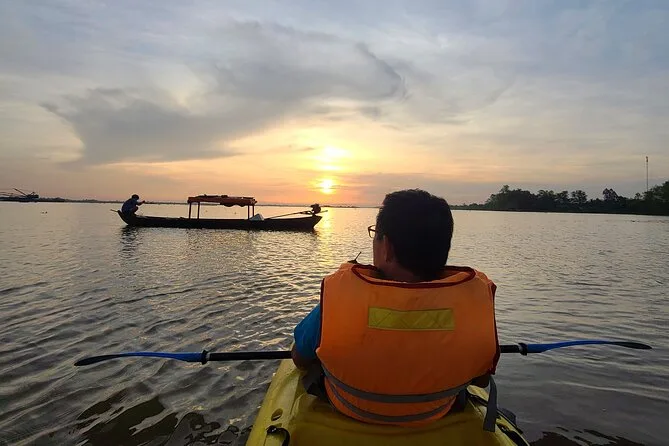 O almoço foi em um lugar minúsculo, comandado por um casal mais velho — arroz, peixe cozido em panelas de barro e legumes em conserva crocantes que me deixaram com água na boca. Depois, trocamos os pedais pelos remos e entramos nos caiaques à beira do rio. A água estava calma, exceto pelo ocasional splash de um peixe pulando ou risadas distantes vindas de algum quintal. Minh apontou para os jacintos d’água flutuantes e explicou como as famílias daqui ainda usam barcos mais do que motos. No fim da tarde, estávamos de volta em terra firme, seguindo para Can Tho para passar a noite. A cidade parecia animada — letreiros de neon piscando sobre barracas de comida de rua — e eu caminhei até a beira do rio antes de descansar no hotel.