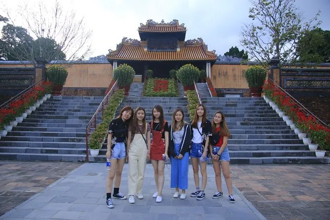 A viagem para Hue nos levou pela Passagem Hai Van — uma estrada sinuosa onde a cada curva se abre uma nova vista das montanhas encontrando o mar. Paramos para fotos; o vento bagunçava meu cabelo, mas eu nem ligava. Em Hue, visitamos uma vila de fabricação de incenso (o cheiro gruda na roupa) antes de seguir para o Túmulo Khai Dinh — mosaicos ornamentados por toda parte, a luz do sol refletindo em azulejos coloridos.