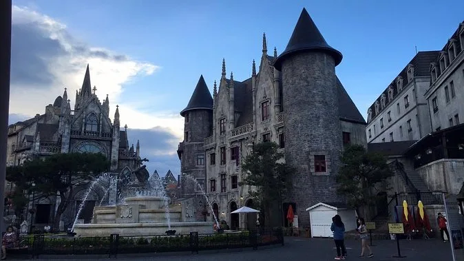 O ar da manhã em Da Nang sempre parece um pouco mais fresco enquanto você segue para o oeste, rumo a Ba Na Hills. Nosso motorista nos buscou direto no hotel — sem complicações — e logo estávamos subindo pelas montanhas. O passeio de teleférico é algo único: você desliza sobre uma densa floresta, com nuvens passando abaixo dos seus pés, até que, de repente, surge a impressionante Ponte Dourada, com aquelas enormes mãos de pedra saindo da névoa. Peguei o celular para tirar uma foto, mas, sinceramente, é daquelas coisas que só vendo ao vivo para entender.