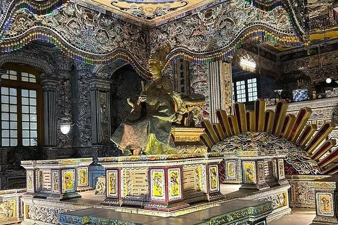 Você terá transporte privado com um motorista cuidadoso, guia que fala inglês e conhece bem o assunto, ingressos para todos os locais listados (Cidadela, pagode, tumbas), água mineral para se refrescar, almoço em restaurante local (com opções vegetarianas) e um passeio de barco-dragão pelo Rio Perfume.