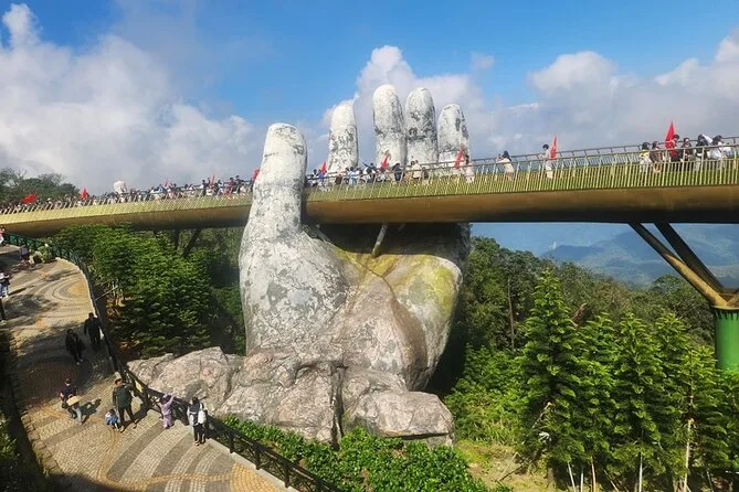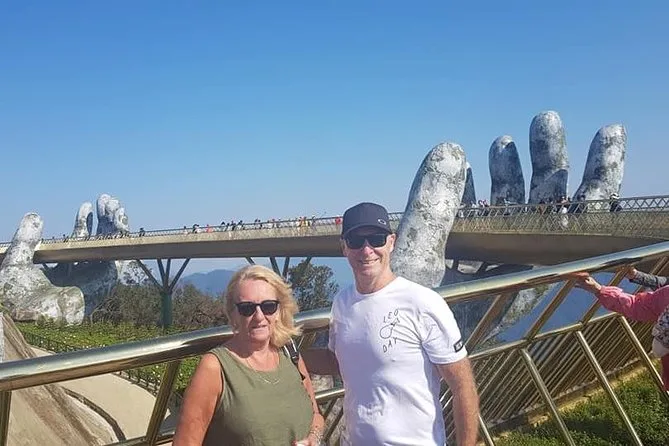 Você vai escapar das multidões na famosa Ponte Dourada do Vietnã com um início cedo saindo de Da Nang ou Hoi An. Aproveite as vistas da montanha pelo teleférico, explore jardins floridos e a Vila Francesa, curta música ao vivo com uma cerveja grátis e relaxe no almoço — tudo com um guia local simpático.