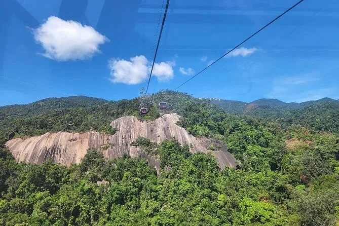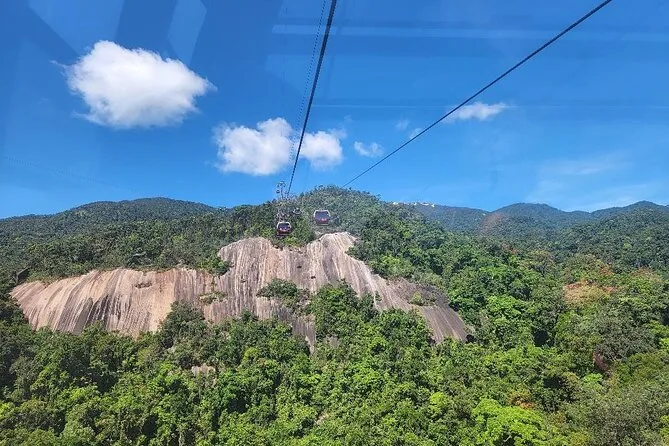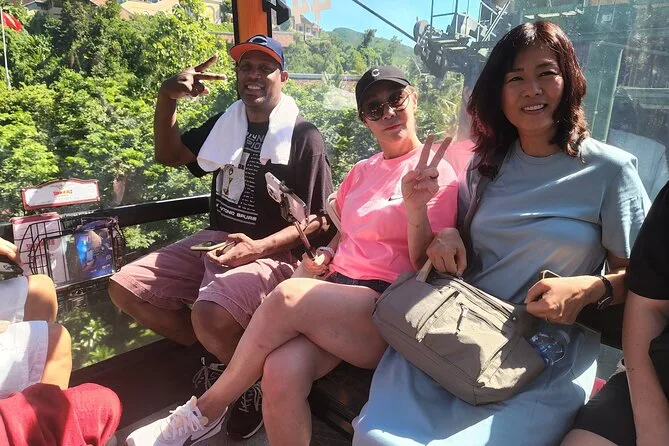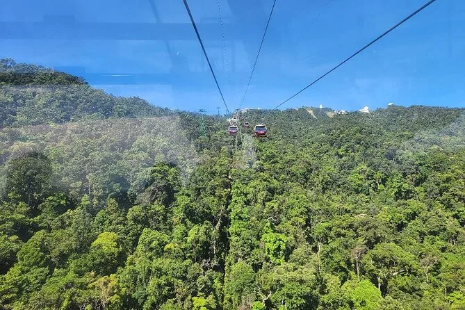 O passeio de teleférico em si? É longo — cerca de 25 minutos — e você realmente tem aquelas vistas panorâmicas sobre a floresta e até a cidade de Da Nang. Nosso guia, o Sr. Minh, apontava pequenas vilas escondidas nas encostas enquanto subíamos. Quando descemos no topo, estava silencioso, só alguns pássaros e alguns madrugadores tirando fotos.