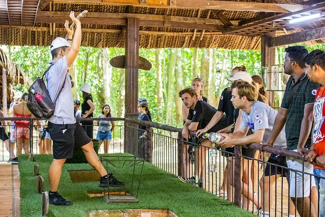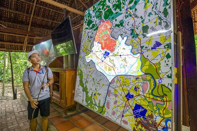 Seu dia inclui transporte com ar-condicionado do hotel em Ho Chi Minh, entradas para a zona de libertação reconstruída e área dos túneis em Ben Duoc, exploração guiada com guia vietnamita em inglês, degustação de chá e tapioca cozida como os combatentes do Viet Cong faziam, além de almoço com menu vietnamita de cinco pratos antes do retorno ao ponto de desembarque na cidade.