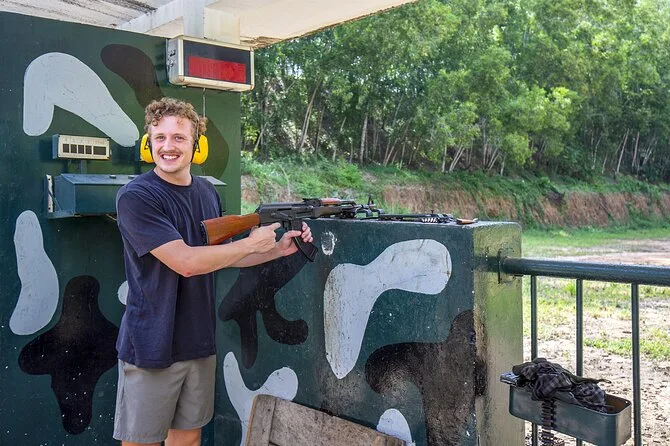 Sim, há visita opcional ao estande de tiro; as balas são pagas à parte para AK47 ou M16.