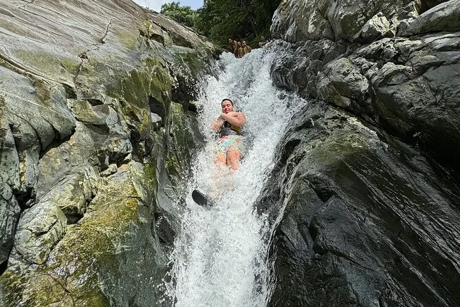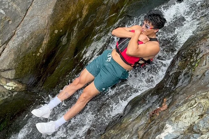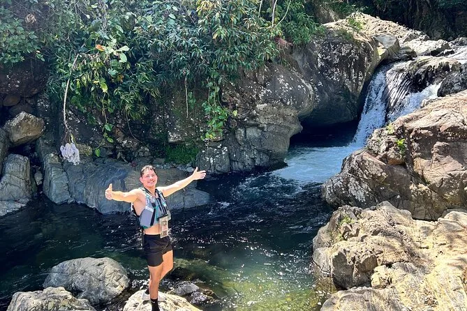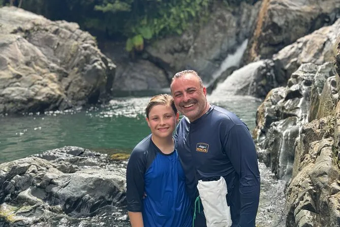 You’ll hike through the rainforest, swim in natural pools, use a rope swing, slide down volcanic rock waterslides, and enjoy snacks together.