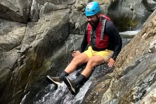 The hike got trickier after that — more climbing than walking sometimes — but José kept checking on everyone (“todo bien?”). At one point he showed us how to grab onto roots instead of branches (apparently some snap easily). The last pool had this natural slide; I watched a kid go down three times before trying it myself. My shorts will probably never dry out completely after that. Lunch was late and loud at some roadside spot on the way back to San Juan; fried plantains and cold soda never tasted so good.