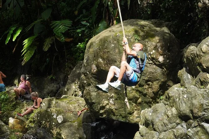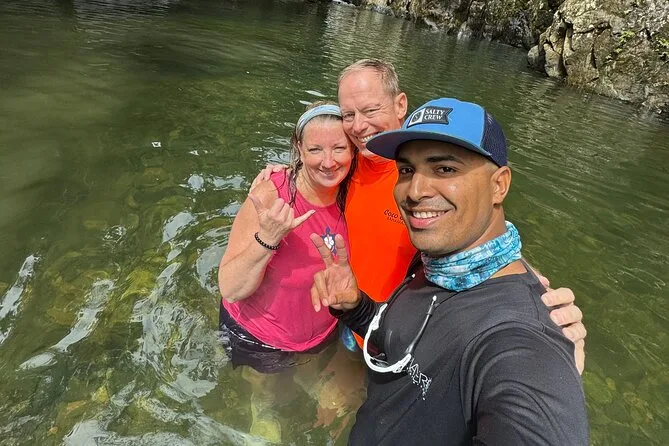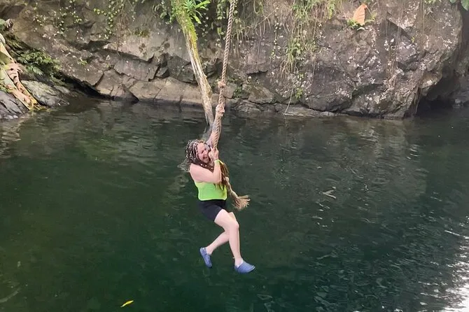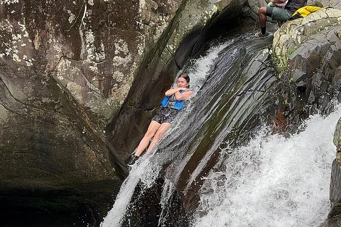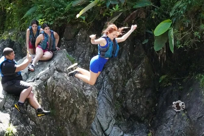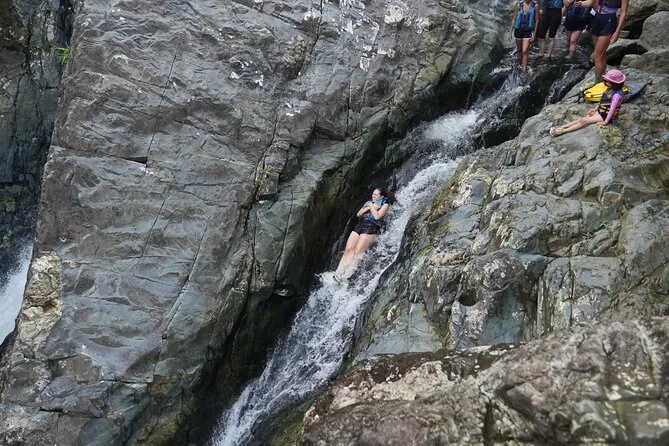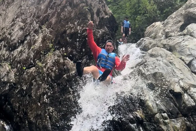 The hike isn’t long (maybe 25 minutes?), but I did slip once on a root—don’t wear your worst shoes. When we reached the river, I could hear laughter echoing off the rocks before I saw anyone. The water was colder than I expected. First slide looked easy until I sat down; then my heart did that weird skip thing. But honestly? It was pure fun—I ended up going twice. Some folks jumped from a cliff (not required), others just floated around or tried the rope swing. Carlos took pictures for us—he joked about catching my “scream face” on camera.