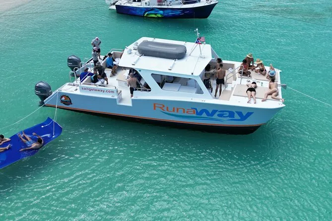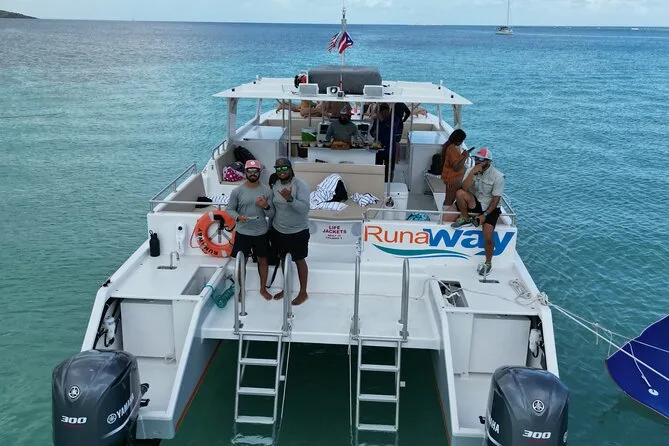 The tour lasts several hours including sailing time, snorkeling at reefs near Icacos Island, lunch onboard, and time relaxing at the beach.