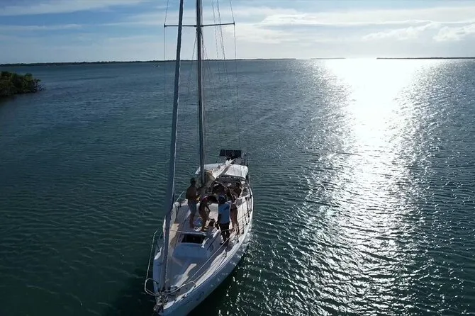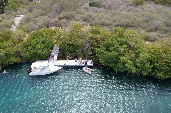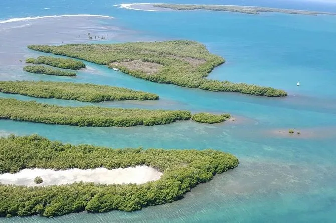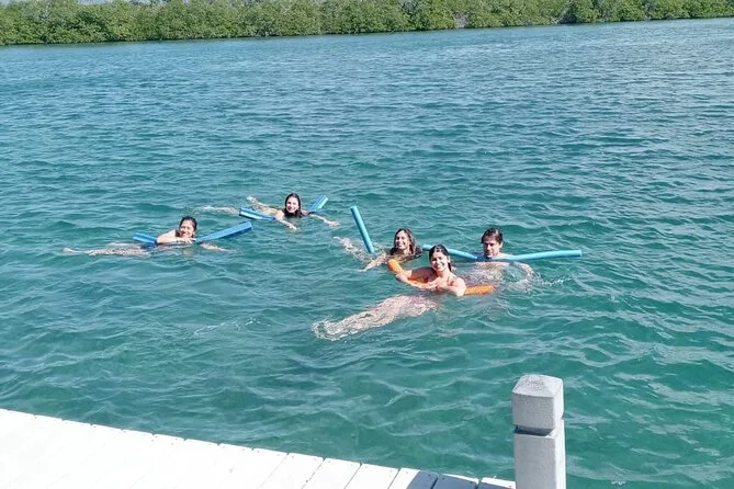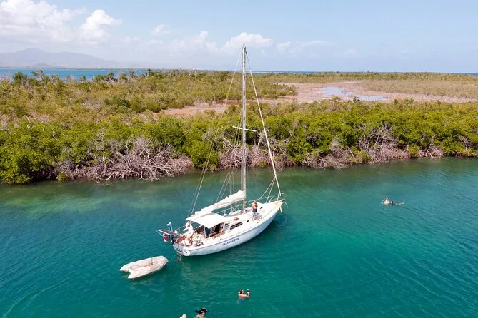 Once we reached the open stretch of Jobos Bay National Estuarine Research Reserve, I could see the Cordillera Central mountains rising hazy in the distance. The captain pointed out Cayo Caribe—a tiny island where we anchored for a bit. Some of us grabbed snorkels and found little schools of fish darting around the rocks; others just floated on their backs, soaking up sun and silence. There’s no rush here. You can bring your own snacks and drinks (we had pastelillos and cold Medallas), so it feels like your own private escape.
