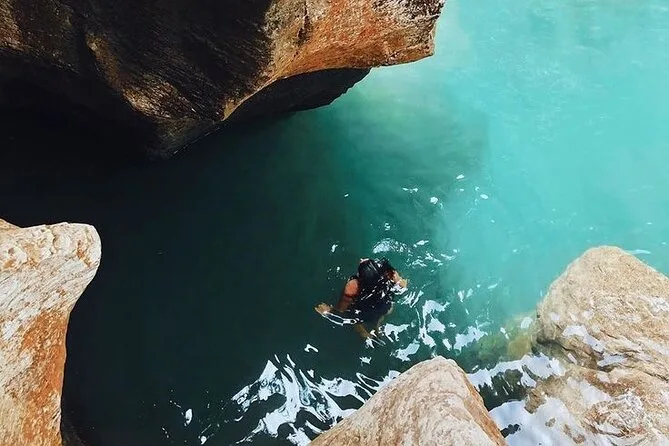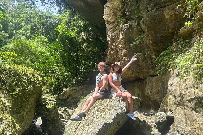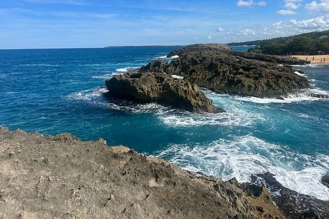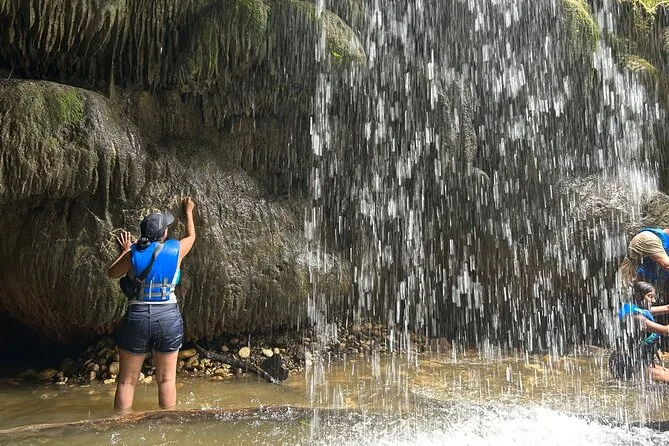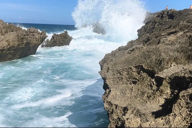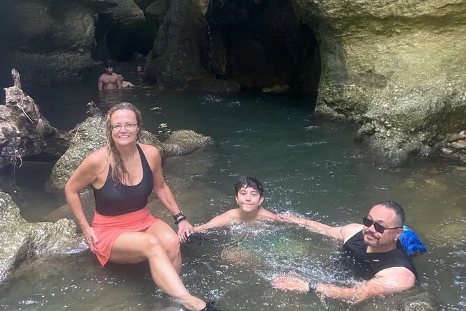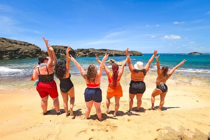 You’ll swim through Charco Azul’s blue canyon, leap (or not) from cliffs with your guide nearby, explore Cuevas Arenales’ caves and waterfalls, then end at Mar Chiquita Beach for food truck snacks and free drinks. Expect laughter, some wet shoes, local stories — plus time to just sit back in the Puerto Rican sun.