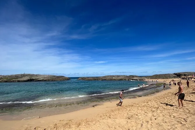 The last stop was Mar Chiquita Beach — honestly by then I was starving. The lagoon is ringed by these jagged limestone rocks; some folks climbed up for photos but I just wanted to sit in the sand with my toes in the foam. Food trucks nearby had fried plantains and cold Medalla beer (free adult drinks included if you’re over 18 — that part surprised me). There were locals playing volleyball and kids chasing each other along the shore. The whole place smelled like saltwater and grilled meat. I still think about that view as we drove back with sunburned noses and sandy feet.