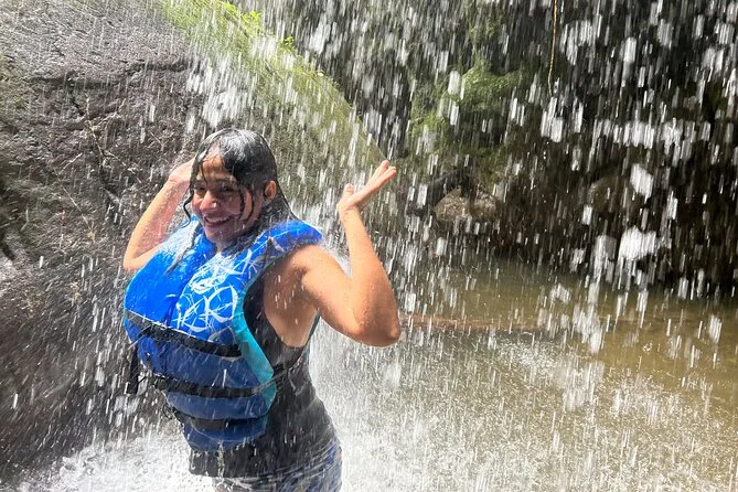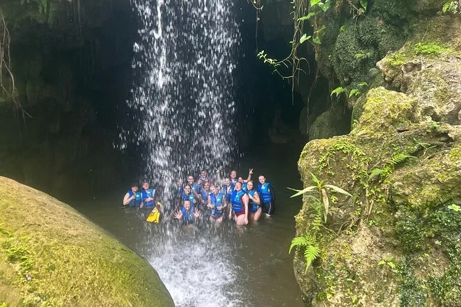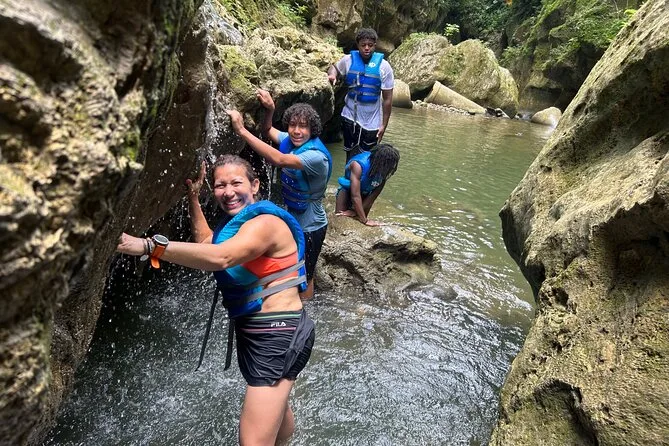 Your day includes air-conditioned transport from San Juan to each stop—Charco Azul canyoning, Cuevas Arenales cave hike and swim, plus time at Mar Chiquita Beach—along with life jackets for swimming sections, bottled water to stay hydrated under the Puerto Rican sun, snacks along the way if you need them, and complimentary adult drinks (for those 18+). Just don’t forget your towel or water shoes!